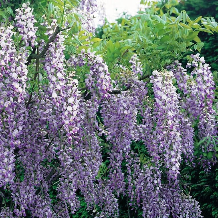 Где лучше растет: Глициния ― теплолюбивое неприхотливое растение, которое отлично растет в солнечных зонах или в полутени. Растение очень светолюбиво, поэтому на участок с глицинией свет должен попадать не менее 5-6 часов в день. При этом нужно защитить глицинию от холода и сильных ветров, поэтому оптимальным решением будет посадка возле южных стен дома.Поскольку глициния используется для вертикального озеленения, нужно обеспечить для нее устойчивую или долговечную опору, которая сможет выдержать многометровые побеги и защитить растение от разлома.Выбирая место, стоит учесть, что вистерия ― многолетник. Ее пересадить очень трудно, поскольку корневая система разрастается на пару метров вглубь земли. Поэтому перед посадкой дважды подумайте, куда вы ее будете высаживать.Особых требований к почве нет, но лучше высаживать глицинию в умеренно плодородный, легкий и влажный субстрат. Почва должна легко пропускать воздух и не задерживать влагу.Глициния плохо приживается и часто болеет в известковой почве. При этом у растения начинается хлороз, который можно узнать по сильно посветлевшим листьям, потерявшим свою декоративность. Также глициния не любит азотистую почву. Если перестараться с внесением удобрений, растение перестанет цвести.Для обеспечения глицинии питательными элементами лучше приготовить грунт самостоятельно и наполнить им посадочную яму. Для этого нужно смешать часть торфа, часть перегноя, часть песка и три части дерновой земли. Этого будет достаточно для укоренения и активного роста глицинии. Перед посадкой ростки глицинии нужно замочить в воде на полчаса. Для небольшого растения нужно подготовить посадочную яму 50×50х40 см. На дно нужно уложить подготовленный субстрат шаром 8-10 см. Закапывать растение нужно на 10 см глубже, чем оно росло до пересадки. Поверх земли кругом глицинии насыпается кора.