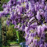 Уход за глицинией заключается в необходимом увлажнении и рыхлении околоствольного пространства, подкормках, а также в своевременной обрезке. Поливы и подкормки Поливать растение необходимо тогда, когда земля вокруг корневой шейки просыхает глубже, чем на 3-5 см. Влагу глициния любит, но застой воды возле корневой системы нежелателен. Подкармливают несколько раз в течение вегетационного сезона, но азот в состав подкормок не включают – в этом нет необходимости. Как и все бобовые, растение аккумулирует его из воздуха при помощи клубеньковых бактерий, и излишек азота приведет к отсутствию цветения. Весной под растение вносят компост и прикрывают околоствольный круг слоем мульчи толщиной в 5 см, чтобы сохранить влагу и контролировать рост сорняков. Некоторые садоводы, чтобы способствовать более активному цветению, весной почву вокруг растения удобряют костной мукой, а осенью – небольшим количеством фосфата. Необходимость обрезки глицинии Секрет хорошего цветения лианы заключается в обрезке, поскольку бутоны у растения формируются на новых приростах текущего года. Первую обрезку делают в конце зимы – удаляют до половины длины прошлогодних побегов, оставляя на них всего несколько почек. Если возникает необходимость в создании более компактной кроны, то обрезают и летом после окончания цветения. Слишком интенсивно разрастающиеся необузданные побеги стригут каждые две недели до конца лета. Обрезка глицинии осенью не производится. Некоторые садоводы практикуют удаление нижних пагонов, закрепив основной стебель так, чтобы сформировать крону глицинии деревом. Такой способ выращивания имеет свои преимущества – не придется тратить средства на сооружение конструкции, выполняющей роль надежной опоры для тяжелых пагонов. Подготовка к зиме Взрослые экземпляры в укрытии на зиму не нуждаются, да и осуществить это проблематично для растений, имеющих уже значительные габариты. В умеренных широтах для украшения парков и частных домовладений стараются использовать морозостойкую глицинию. Однако молодые саженцы страдают от понижения температуры больше, чем зрелые растения того же вида или сорта. Вот почему в первые годы жизни по возможности их пагоны снимают с опор, укладывают на землю и накрывают опавшими листьями или лапником.