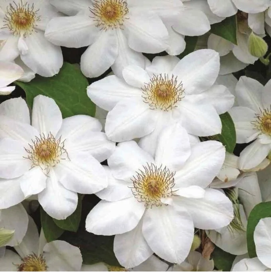 Клематисы сорта Ежи Попелушко без всякого преувеличения можно назвать одним из самых красивых цветков летнего сада. С наступлением мая на лиане, достигающей 3 метров в высоту, начинают распускаться белоснежные соцветия, перед красотой которых склоняют головы даже самые опытные цветоводы. При виде обильно цветущего Ежи Популушко кажется, что это не растение, а спустившееся с небес на землю пушистое белое облако. В самом сердце соцветий – изящные кремовые нити-тычинки, на вершине которых расположились пыльники ароматного кофейного цвета.
