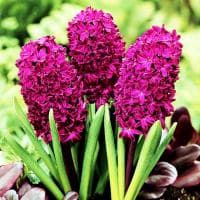 Крупноцветковый гиацинт Вудсток не может остаться незамеченным! Насыщенный пурпурно-лиловый окрас его крупных соцветий, переливающихся рубиновым блеском, манит и пленяет. И лишь только где-нигде проглядывают желтенькие-вкрапления-бусинки, расположенные в самом сердце десятков цветов.