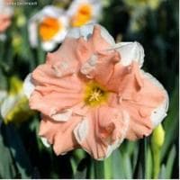 Увидев широко раскрытые крупные соцветия нарцисса Априкот Вирл, вы наверняка «утонете» в кружевной пене его волнистых белых лепестков. Следом за лепестками в бой вступает нежно-абрикосовая корона, окрас которой вобрал в себя все тепло и нежность весенних красок. Ну и завершающим шагом в образе Априкот Вирл являются солнечные тычинки, застенчиво выглядывающие из светло-зеленого горла цветка.