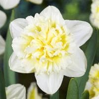 Именно так переводится название махрового нарцисса Айс Кинг, являющегося одним из самых поразительных и эффектных сортов луковичных. В период цветения только он может устроить ошеломляющий переполох в сад! Сочетание сливочно-белых и насыщенно-желтых оттенков, появляющихся в начале роспуска цветов, постепенно сменяется однотонным кремовым.